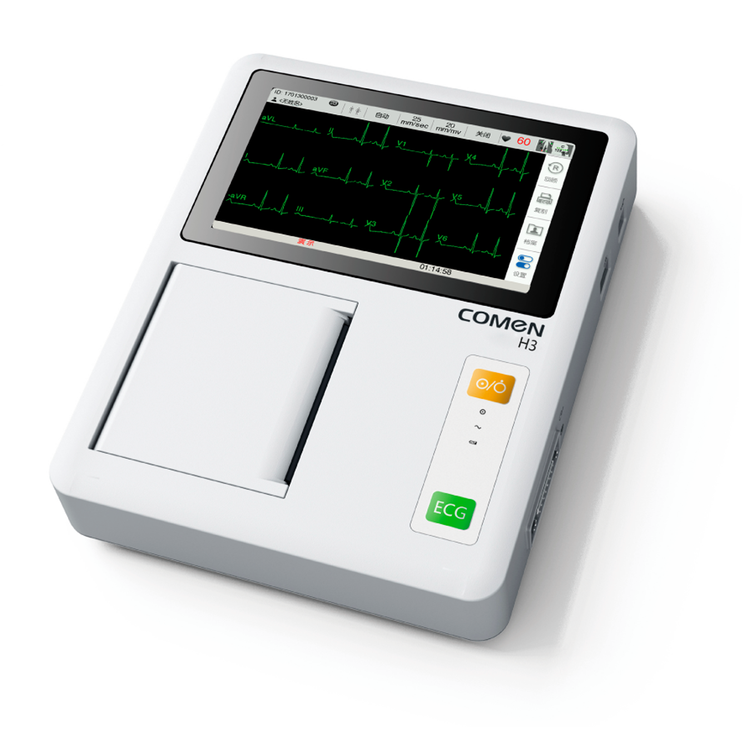 El Electrocardiógrafo Comen H3 es un dispositivo médico avanzado que proporciona registros precisos y detallados de la actividad eléctrica del corazón.